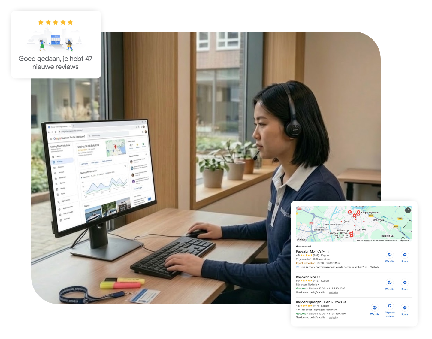 Reageert direct op elke review, wat Google beloont met een hogere ranking (SEO).