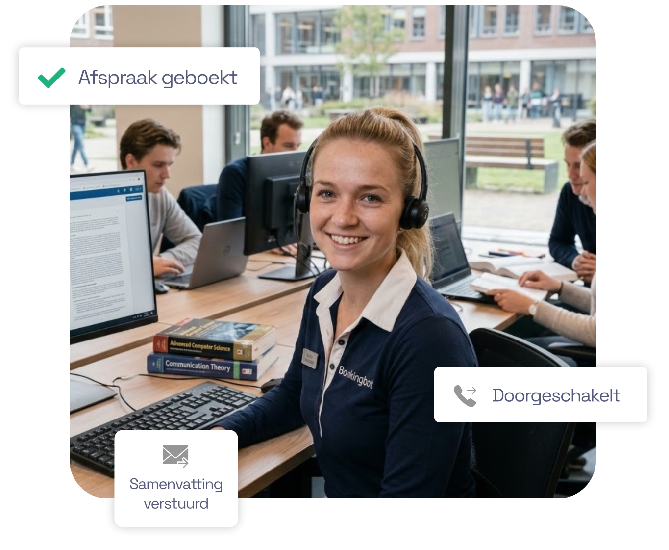 Boekt afspraken en noteert terugbel-verzoeken in je agenda.
